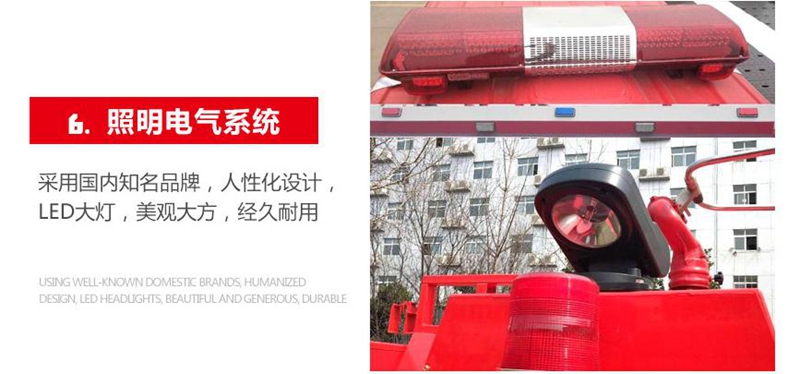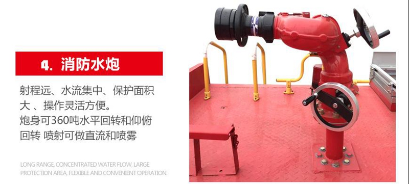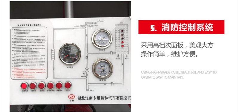 專用功能說明: 消防泵型號:CB10.20常壓泵 低壓:20L/s@1.0MPa **大吸水深度: 7m **大吸深水時間:≤35s 水泵驅動方式:夾心式取力器 消防炮型號:PL20(消防水炮) 流量:20L/s 有效射程:≥40m/1.0MPa |
