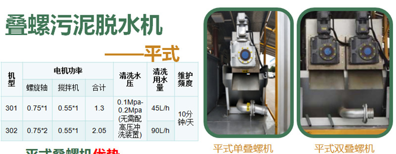 有50千瓦發電機或者發電機組; 7.5千瓦四級電機帶水循環真空泵; 80毫米口徑的變頻電機轉子泵帶調頻器; 高壓泵有德國品孚和天津雙耀兩個型號的; 電控箱的箱體為不銹鋼材質,里面的電器為德力西部件,帶熱保護系統和自動換向系統,上面還裝配一個監控系統,監控頂部污水反應箱的情況; 401或者402疊螺機為江蘇天尼威,全國知名品牌,疊螺機上面1.1千瓦減速機為江蘇國茂,疊螺機為304不銹鋼材質。