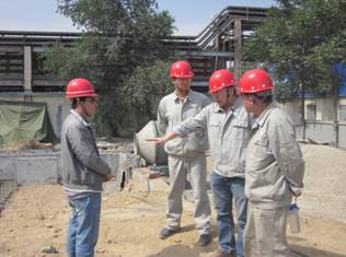 該項目初級階段,公司各級領導極為重視,杭州華源前線能源設備有限公司董事長蔣聞文、總經理徐國富都親自來到工地一線考察項目實際情況,并共商工程要點,協調人員保證質量前提下,確保工期;營銷部經理梁仁泉與項目部經理郭亮在現場協調人員現場勘查,并與項目負責人積極溝通,根據具體情況,優化設計方案:自控方面,兼顧設計與實用性要求,氣力除灰系統采用程控運行,以確保有充分時間進行系統檢查、維修和故障消除;提供詳細PID圖,若出現某一輸送器故障,可以將其旁路,而不影響其它灰斗卸灰正常運行;土建方面,由于地處黃河一級堆積階地,地基土層不能直接作為建筑天然地基,我方土建設計人員依據建筑結構抗震設計規范,經過縝密計算,加深了人工地基垂直深度,其可抗力為地震烈度12級。公司各部人員工作緊張忙碌,表現出坐不住的緊迫感、慢不得的使命感。在公司總部,計劃、采購、設計等極力配合,多數人員主動放棄休假,保證了現場的設計、材料供應和資金用度。