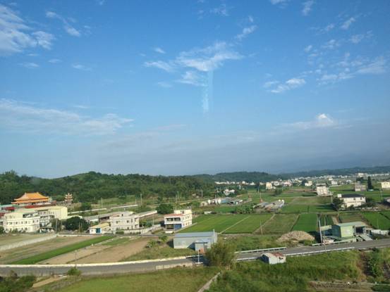 9月25日,我們于13:10分到達高雄機場,早上從杭州出發的時候,陰冷的天氣讓你有些沮喪,但下了飛機,臺灣的藍天白云和適宜的溫度頓時給我們的旅行心情加了滿分。一路的綠色,有一種途經農場的感覺。