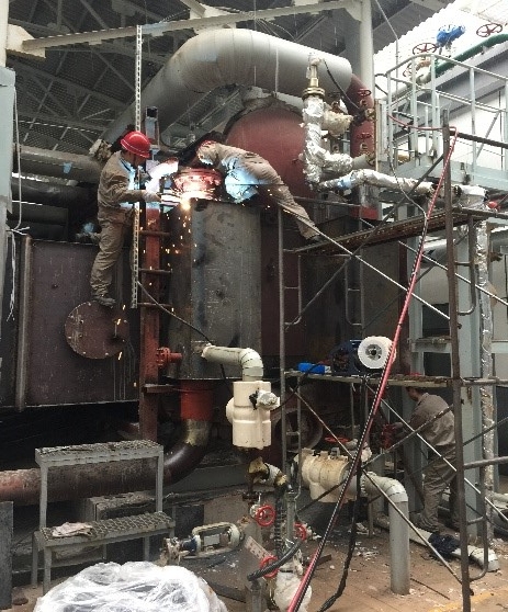 黃梅季的杭嘉湖平原,大雨小雨不停歇。 近日,桐鄉電廠的客戶打來電話,希望進行燃燒器、過熱器、煙氣、密封裝置的改造工作,制定了計劃整改日。臨行日到來,窗外卻是大雨無歇。項目經理有些猶豫:露天施工難度大啊……可若是晚兩天再去,改變計劃、工期延誤會造成客戶的損失。經過多次溝通,項目經理伏案細想雨天工程中的難點要點,制定解決措施,做好計劃心里有了底,帶上施工隊出發了…… 在現場穩穩地搭好腳手架(確保安全第一),系好安全帶,帶上安全帽,人員分組,焊機到位,確認準備工作已就緒,開工…… 辛勤工作者們地風采: