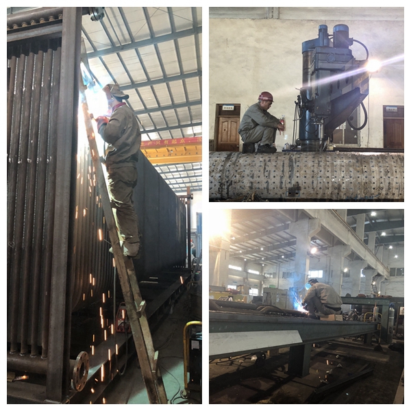 焊接車間里,電焊工人正在認真焊接焊縫,焊完后還要進行清渣,車間里不時回響著敲打的聲音。氣溫雖然不高,但是汗水早已浸濕厚重的工作服。
