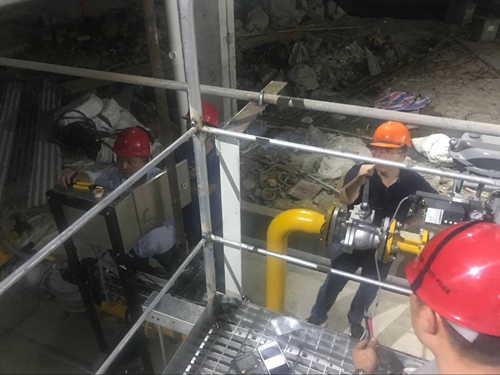 燃燒器的調試最為艱難,該項目采用新型進口低氮燃燒器,在燃燒器廠家無法提供關鍵技術完整技術資料的情況下,我公司的現場電氣調試工程師盛新、林栓、王鋒通過一次次實驗,改變進風頻率、風門開度,摸索出進風量調節比,成功點火。