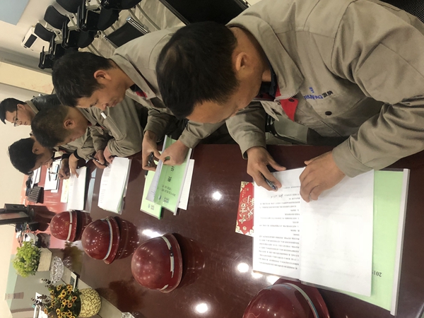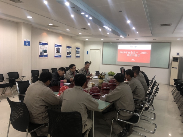 為進一步落實年度安全生產和消防安全工作,預防各類安全事故的發生,2019年2月27日,杭州華源前線能源設備有限公司舉行了《2019年度安全生產(消防)責任書》簽訂儀式。公司董事長蔣聞文、總經理助理郭亮、生產部經理單永平以及各項目班組負責人參加會議。