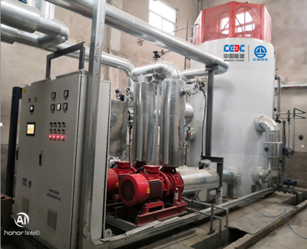 圖為電極鍋爐蓄能罐現場圖