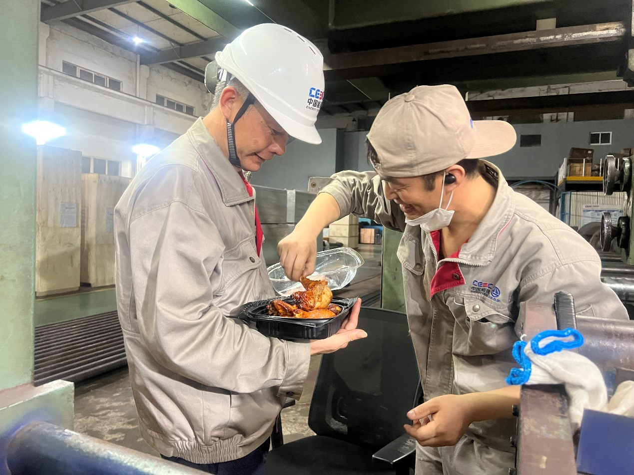 這時,“我”聞到了一股飯香,原來是領導帶著美食來看望“我”了,他親切的與工人師傅們交談,詢問生活與工作的情況,并對大家的辛勤付出表示感謝。