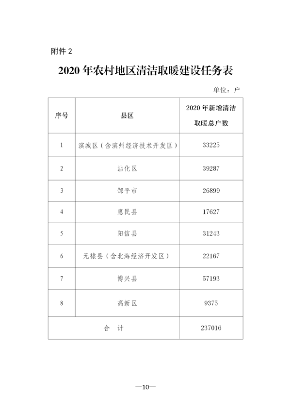 濱州市人民政府辦公室關于印發濱州市2020年清潔取暖建設推進實施方案的通知